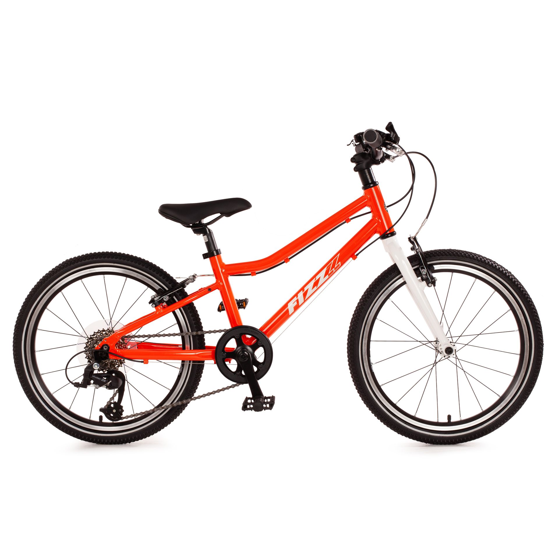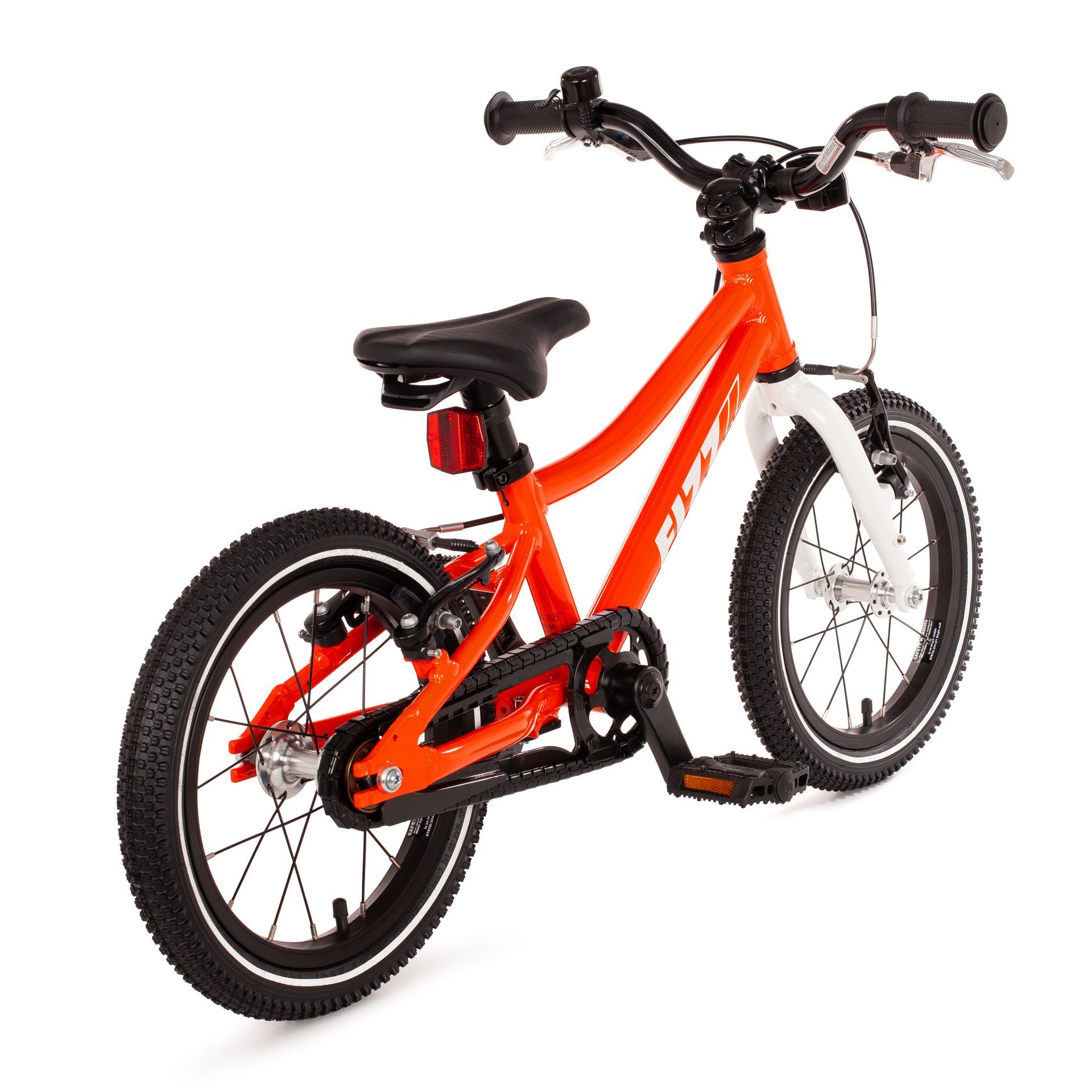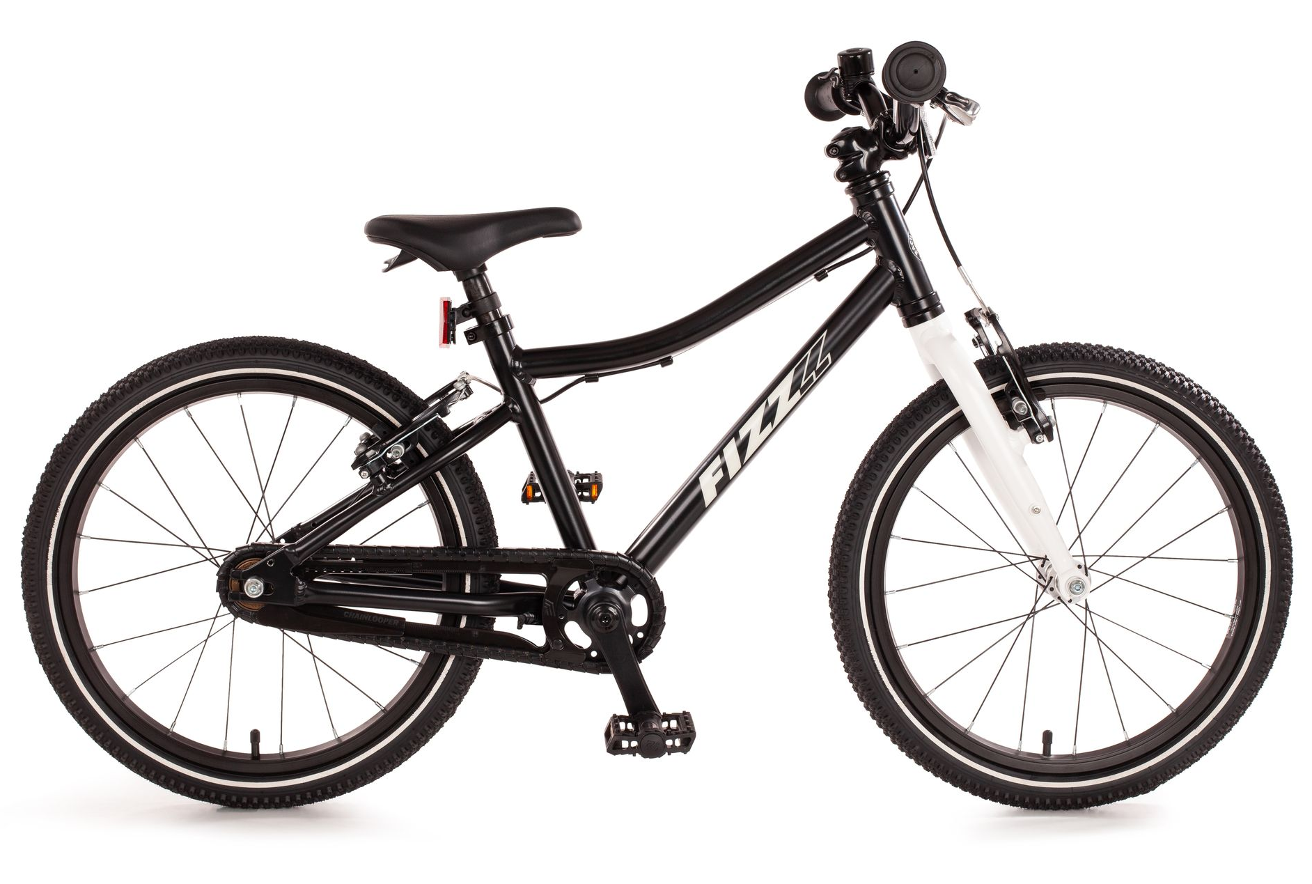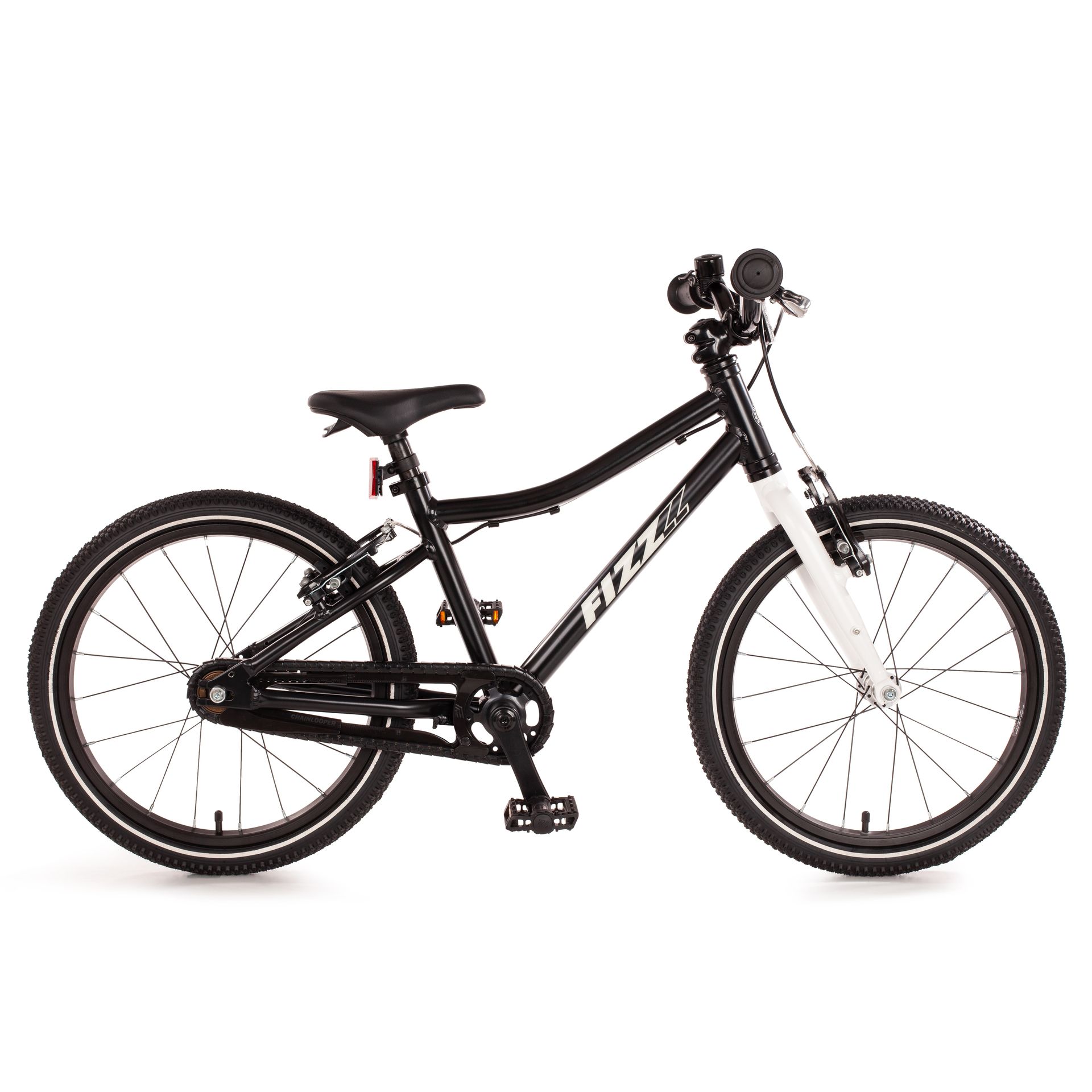 Alle FIZZ-Kinderfahrräder werden ohne Aufpreis inklusiv einem Seitenständer aus Aluminium, einer Glocke und Reflektoren geliefert. Die überarbeitete FIZZ-Version 2025/26 ist zusätzlich mit reflektierenden Streifen entlang der Reifenflanken ausgestattet.