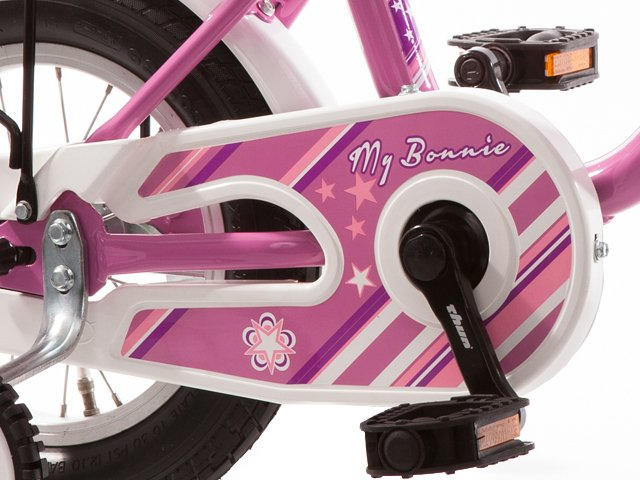 Die kleinen 12" und 14" My Bonnie-Kinderfahrräder mit dem klassischen und tiefen U-Type-Rahmen sorgen für einen sehr sicheren und bequemen Auf- und Abstieg. Die "großen" 16" und 18" Fahrrädchen sind durch den Wave-Rahmen (mit dem Querrohr) stabilisiert. Serienmäßig vollwertig und sicher ausgestattet - mit allem was ein gutes Kinderfahrrad ausmacht:
